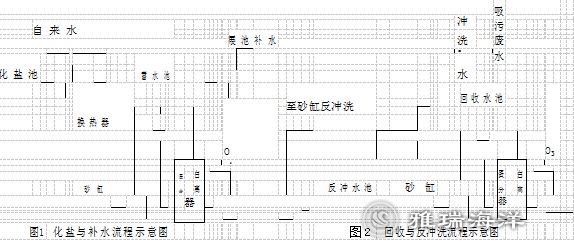 底層懸濁液排至室外集中處理,上清液則經(jīng)凈化處理,儲存于反沖洗水池內(nèi),由反沖洗水泵抽取,供各展